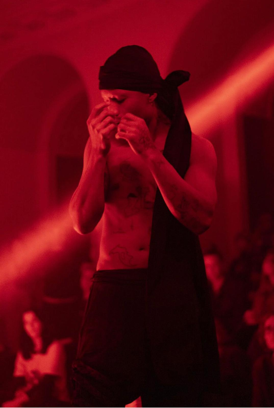 Dancing with the devil / a symphony of organs scattered over the floor is a 3 hour durational performance grappling with our experiences of existing within and witnessing multiple intersecting global crises. Joshua Woolford, Sippin’ T, and Lie Ning, styled by Yodea Marquel, interact with external, natural and technological ‘organs’ which are amplified through repetition, audio loops and electronic processing. In these tangled and fractured moments, Woolford seeks alternative ways of sharing space, criticising power, and expressing oneself in spite of the extractive and dehumanising colonial and capitalist realities we find ourselves within.